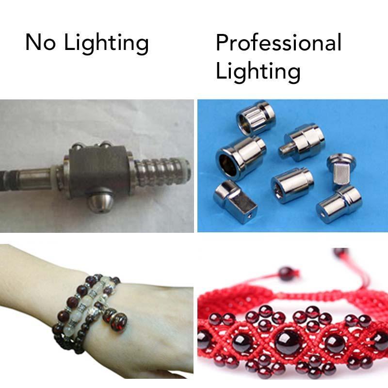 • Faixa de luz super brilhante embutida, providenciando luz média e prevenindo sombras e reflexos em suas fotos